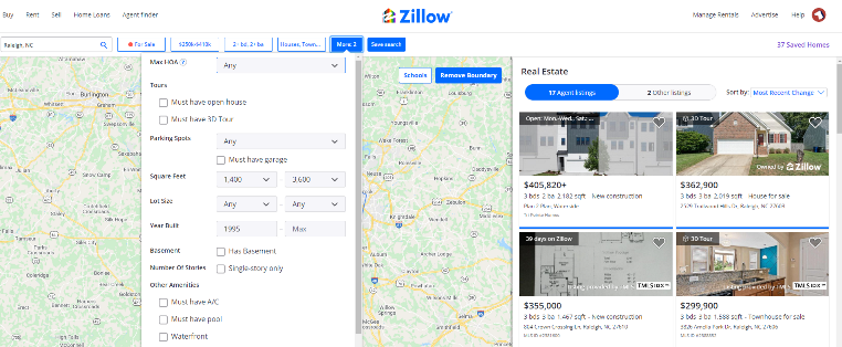 But in my scenario, I had already been stalking homes for months before I even engaged a realtor. While your realtor will use a professional MLS listing application, I found that Zillow does a darn good job and has some nice features. You can set up a custom search just like your realtor will but on the Zillow app, you can also draw a boundary line map for where you’d like your listings to come from. This map feature is a much better way to target homes if you know what you want. I created one primary search based on fairly exact numbers of what I can afford and wanted within this mapped out zone. I then created a broader search that had larger boundaries, a bigger price range, bigger square footage range, bigger age range, just in case I was missing out on something.